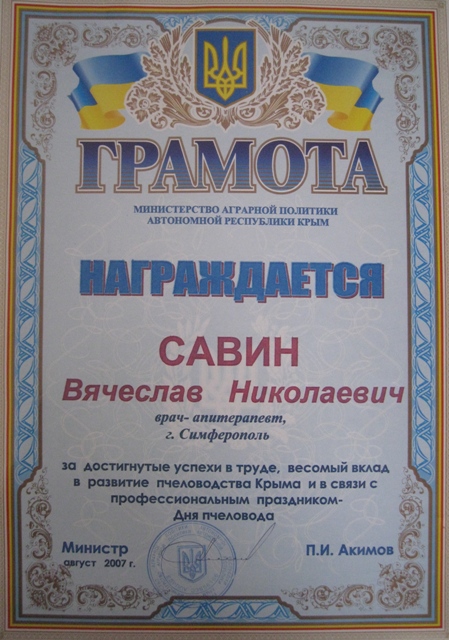 Почетный апитерапевт-пчеловод Крыма