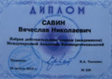 25 августа 2010 года Савину Вячеславу Николаевичу была присвоена ученая степень доктора философии коррекции полевых структур. А 28 августа 2010 года Савин Вячеслав Николаевич был избран действительным членом, академиком Международной академии биоэнерготехнологий.